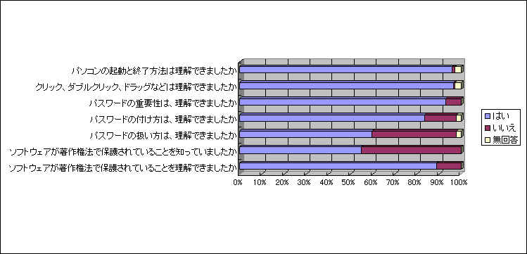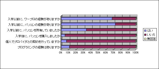 ワープロやパソコン環境、プログラミング経験についての結果です(設問1、設問2)。
