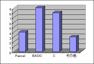 プログラミングの経験があると回答した人の中で、主に利用した言語を以下に示します(設問2)。縦軸は人数です。