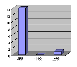 プログラミングの経験があると回答した人の中で、その水準を以下に示します(設問2)。縦軸は人数です。