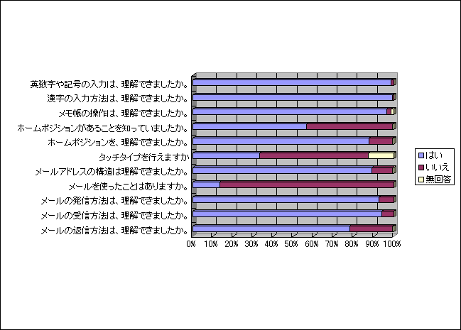 文字の入力,キーボードの操作,電子メールについての結果です(設問1、設問2、設問3)。
