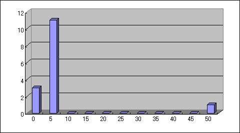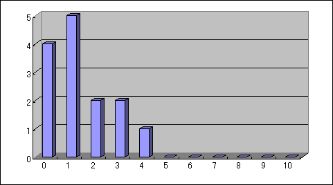 メールを使ったことがあると回答した人の中で、1日に発信するメールの数は以下の通りです(設問3)。横軸はメールの数、縦軸は人数です。