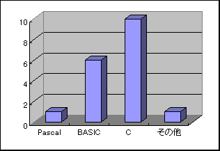 プログラミングの経験があると回答した人の中で、主に利用した言語を以下に示します(設問2)。縦軸は人数です。