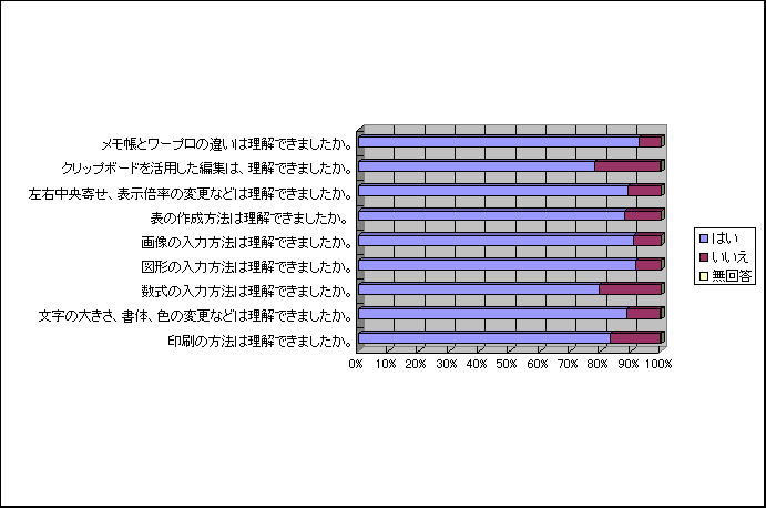 普段使っているワープロと実習で使用したワープロとの違いについて(設問2)。