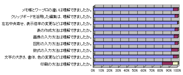 - MS−DOSのワープロしか使ったことがなかったのですごいと思った。文字以外(表など)の作成は思っているよりも楽なようだ.