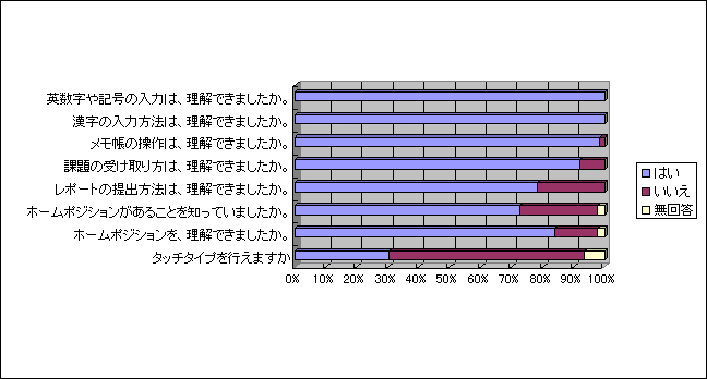 文字の入力、レポートシステム、キーボードの操作についての結果です(設問1〜設問3)。