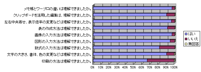 普段使っているワープロと実習で使用したワープロとの違いについて(設問2)。