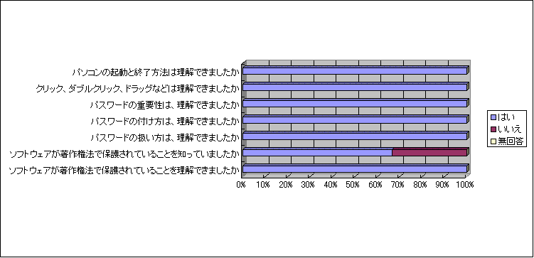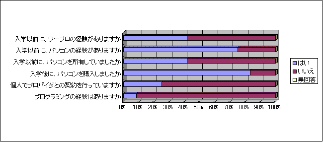 ワープロやパソコン環境、プログラミング経験についての結果です(設問1、設問2)。