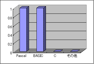 プログラミングの経験があると回答した人の中で、主に利用した言語を以下に示します(設問2)。縦軸は人数です。