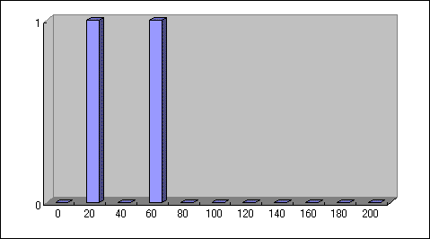 一分間に入力できる文字数(英数字)。横軸は文字数、縦軸は人数です。