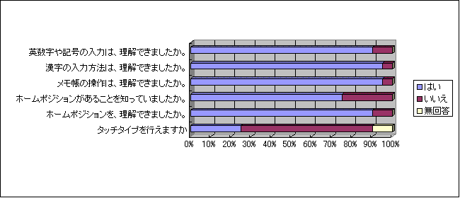 文字の入力,キーボードの操作についての結果です(設問1、設問2)。