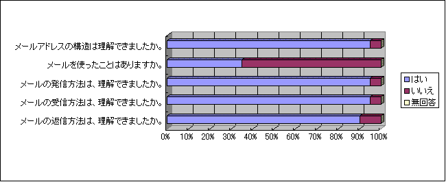 - 今日の授業は今までで一番楽しかったです。今までEメールはもっとむずかしいものだと思い込んでいたのですが、今日、習ってみてぜひ自分もアドレスをもって友だちとメール交換を楽しみたいと思います。