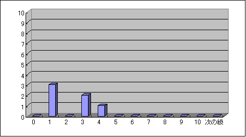 1日に発信するメールの数。横軸はメールの数、縦軸は人数です。